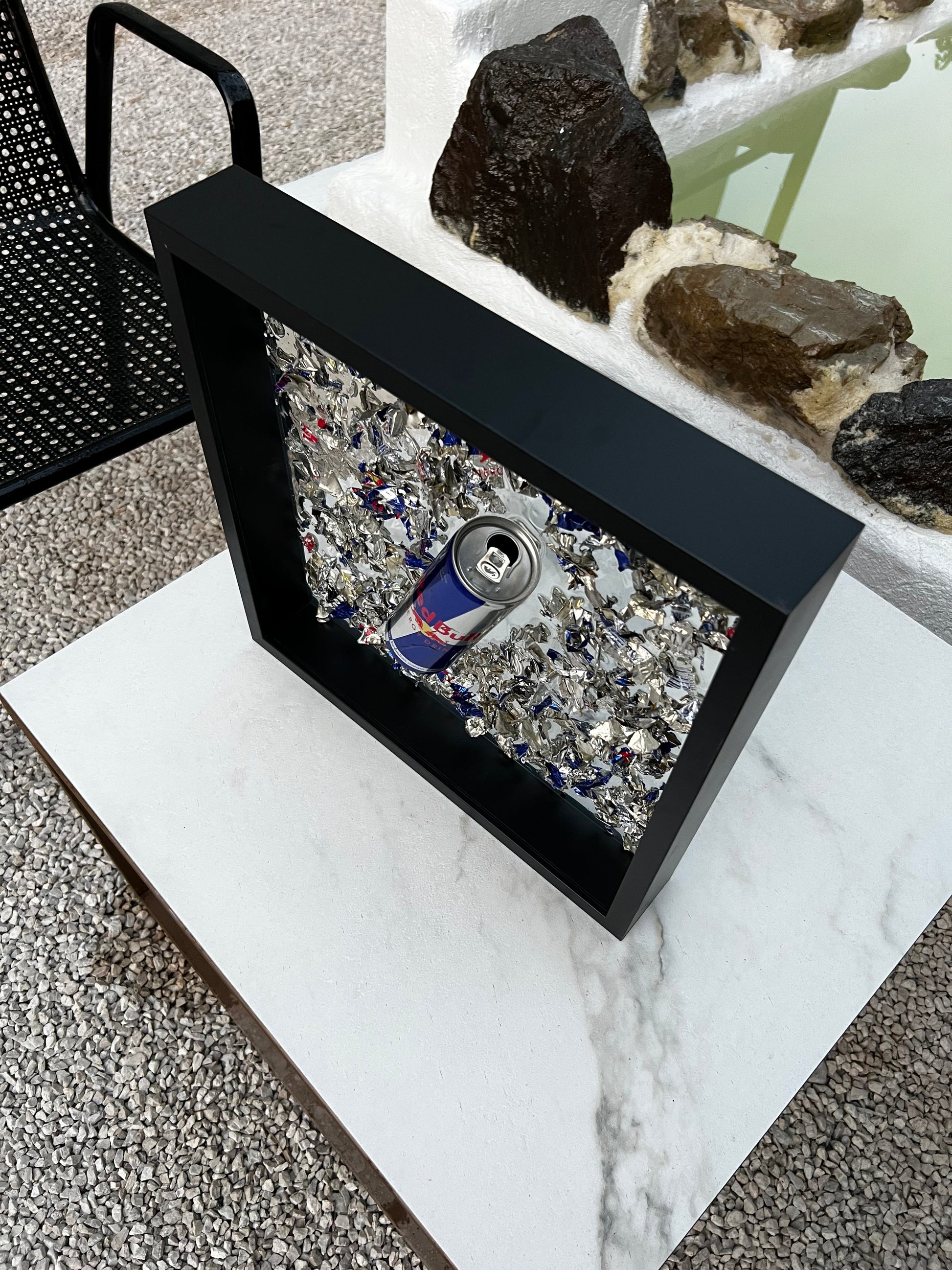 Cuadro completamente único de red Bull hecho a mano y cada uno es una obra de arte artesanal, lata de red Bull con resina epoxi, laca 2k transparente y latas trituradas que dan un aspecto único al cuadro.